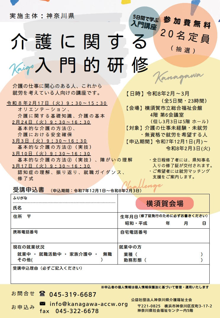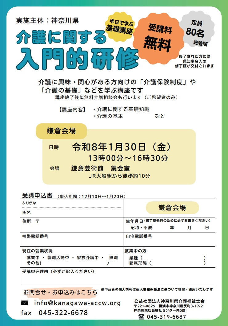 介護に関する入門的研修【鎌倉会場】開催のご案内
