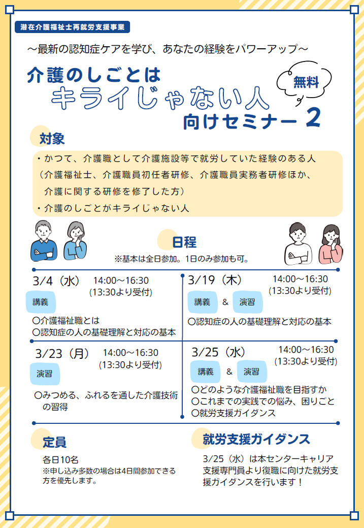 今年も開催します!「介護の仕事はキライじゃない人向けセミナー」2